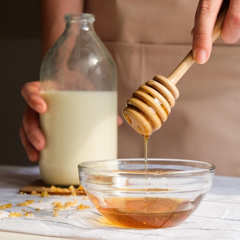 Deberás de tomar un envase, en el cual deberás de agregar un poco de leche y un poco de miel, estos deberás de resolverlos muy bien para que sus propiedades se unan y funcionen mejor así que separadas. Luego de esto la mezcla que hayas realizado procederás a colocarla en tu cabello, para después dejarla ahí reposar por al menos 30 minutos.