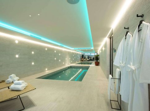 Este chalet cuanta con un gran hall de entrada de doble altura, un salón formal, un comedor y una sala de televisión. Además, incluye un semisótano con una zona de spa y una piscina interior climatizada, con una máquina de natación a contracorriente instalada. Igualmente, dispone de sala de juegos, bar, barbacoa y zona chillout, entre otras comodidades.