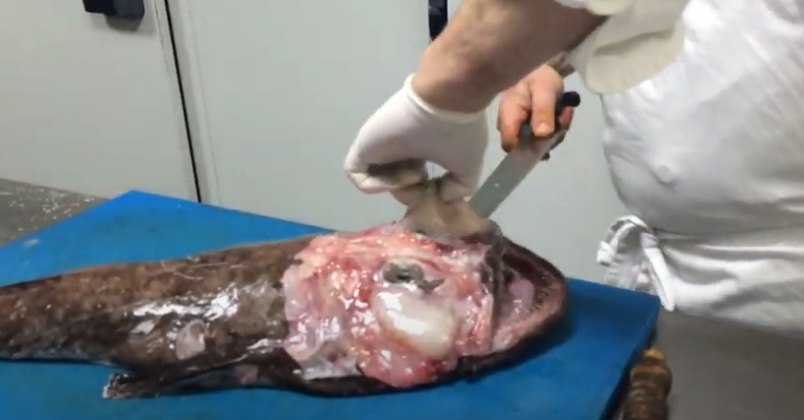 Esta carne es una de las más apreciadas por su gran jugosidad, pero es más dura que el resto de la carne de este pescado; así que no la desperdicies jamás. Aprovecha que ya has quitado la piel del área del rostro, y con el cuchillo retira ambas carrilleras.