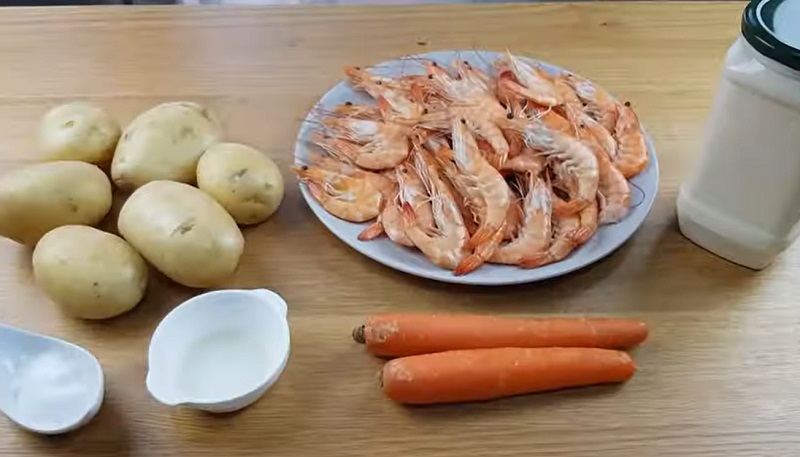 Para realizar esta espectacular receta, necesitarás al menos medio kilo de gambas. Puedes comprar el marisco fresco, cocido o congelado. Incluso los venden ya pelados para ahorrar el trabajo de quitarles la cáscara. También vamos a emplear dos zanahorias, cinco patatas grandes, guisantes cocidos, mayonesa, sal y pimienta. Comenzamos con la preparación de la ensaladilla de gambas...