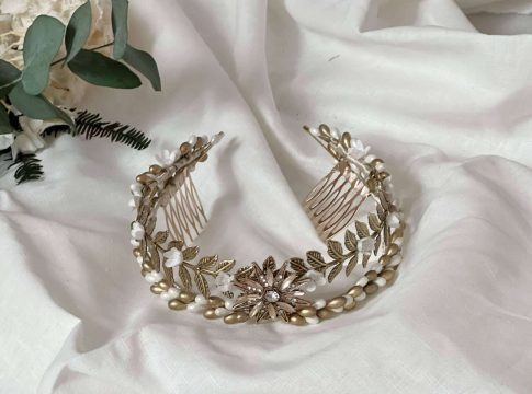 Las coronas de novia son también accesorios muy requeridos. Fernández asevera que para trabajar en estas piezas se necesita un tiempo mínimo para su elaboración. Son accesorios elaborados de forma artesanal y personalizada que requieren mucha atención al detalle, sobre todo con componentes como flores preservadas y pedrería.
