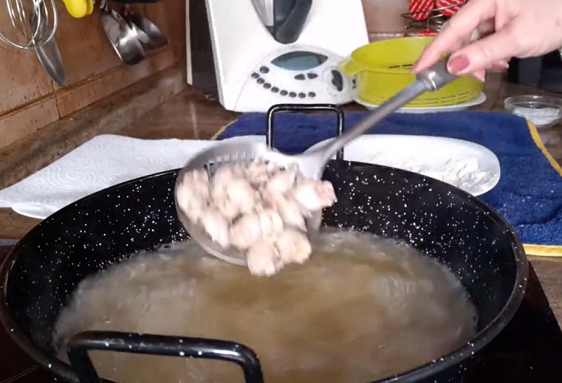 Para que no te quede con mucha harina, sacude el exceso antes de meterlo en la sartén. Es complicado acertar con el punto de fritura, por lo que no puedes descuidar los chopitos. Con la ayuda de una espumadera, vete controlándolos de vez en cuando. Sácalos en cuánto notes que cogen un tono dorado. Ya solo queda un paso para finalizar este plato...