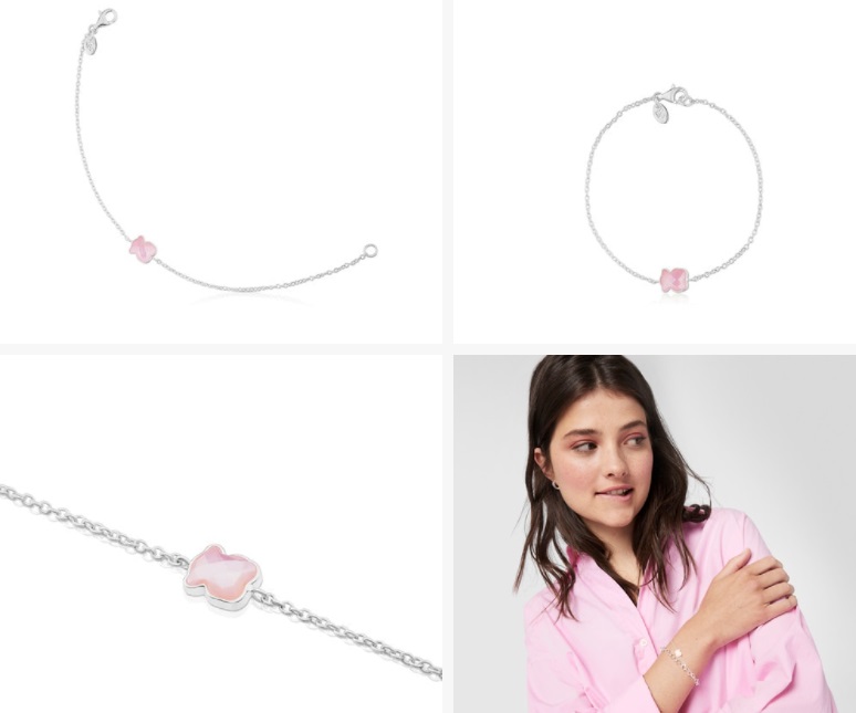 Como puedes observar, los ositos impregnan todos los diseños de la marca catalana. Las pulseras también cuentan con su icónico símbolo. Para muestra, esta pieza realizada en plata de primera ley con el osito fabricado de cuarcita rosa. Puedes comprarlo en las tiendas de Tous o en su página web por apenas 55 euros.