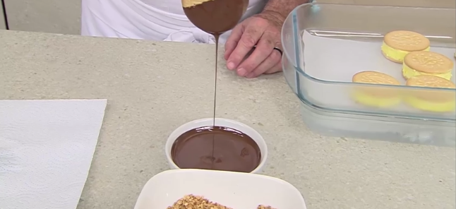 Espera unos minutos antes de preparar la cobertura de chocolate y cuando ya los sándwiches helados hayan tomado consistencia, comienza la preparación de la salsa de chocolate.