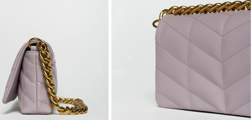 La siguiente propuesta del catálogo de la marca de El Corte Inglés es una bandolera de color lila. El bolso es acolchado con motivos geométricos. Además, cuenta con una cadena de oro con eslabones anchos que funciona como asa. Se cierra mediante una solapa con cierre de botón. Sfera vendía este producto por 17'99 euros, pero ahora puedes hacerte con él por solo 13'99 euros.