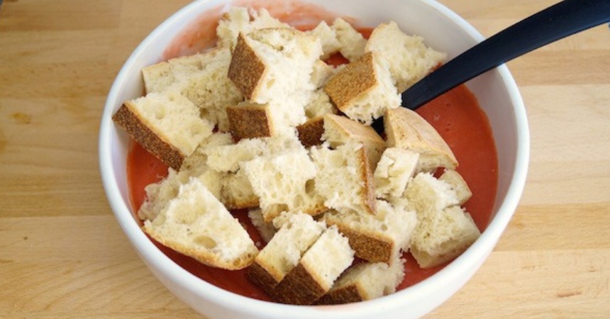 El pan es uno de los ingredientes que dará consistencia al salmorejo y es por esta razón que utilizar uno de buena calidad y con buena miga, se hace indispensable. Preferiblemente, emplea el de Telera cordobesa.