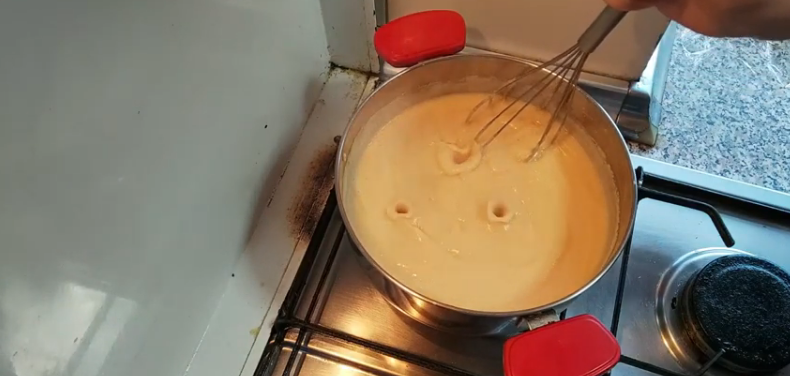 Tal como te he mencionado, para que puedas retirar la preparación del fuego y proceder a hacer los huevos de fraile, es necesario que la masa se despegue con facilidad de las paredes de la olla en la que la has cocinado.