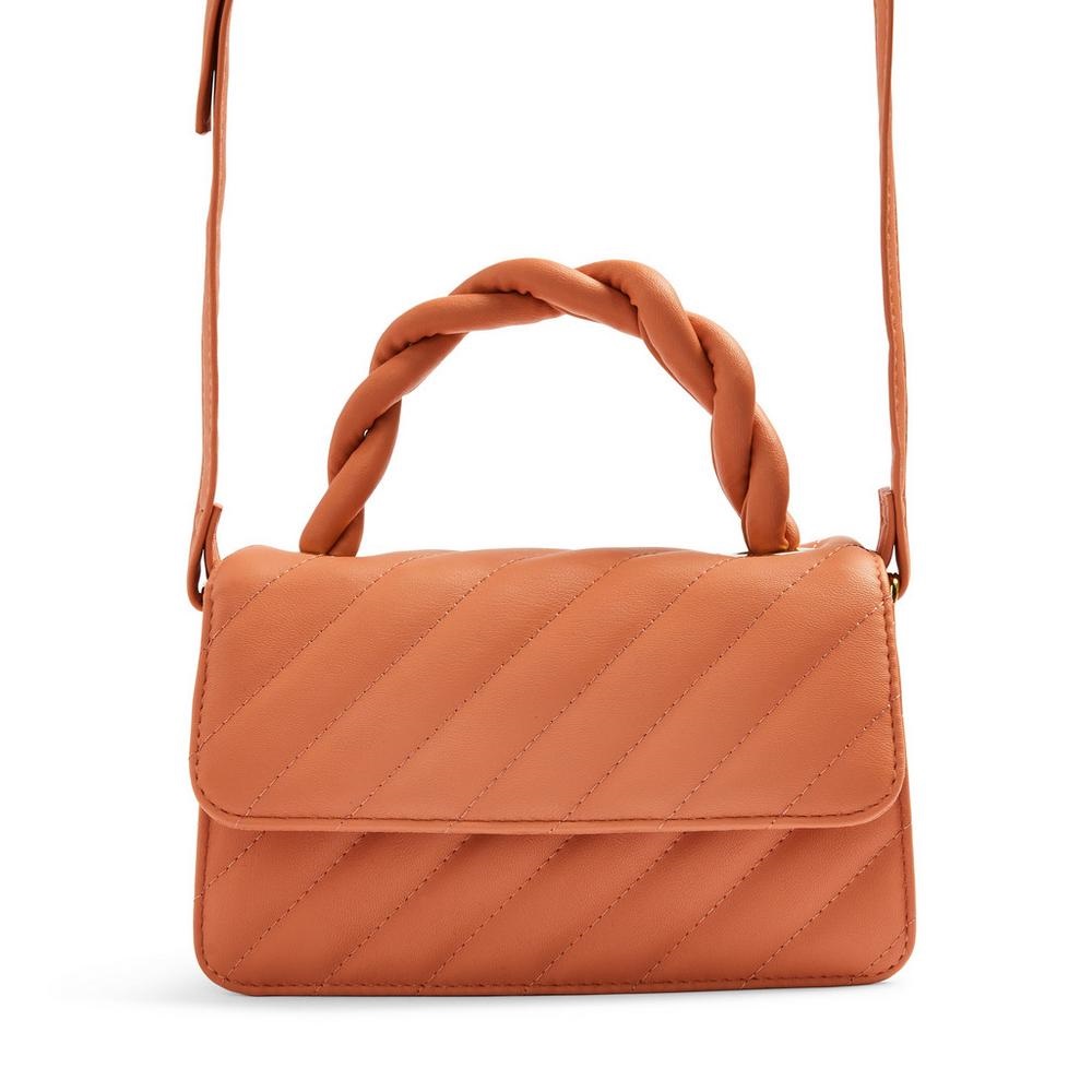 8Bandolera color melocotón de piel sintética con asa acolchada en la parte superior