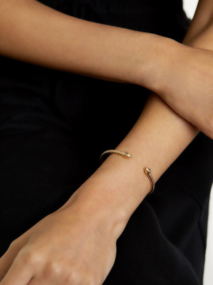 Por ejemplo, en esta pulsera dorada con una sugerente forma de serpiente.
