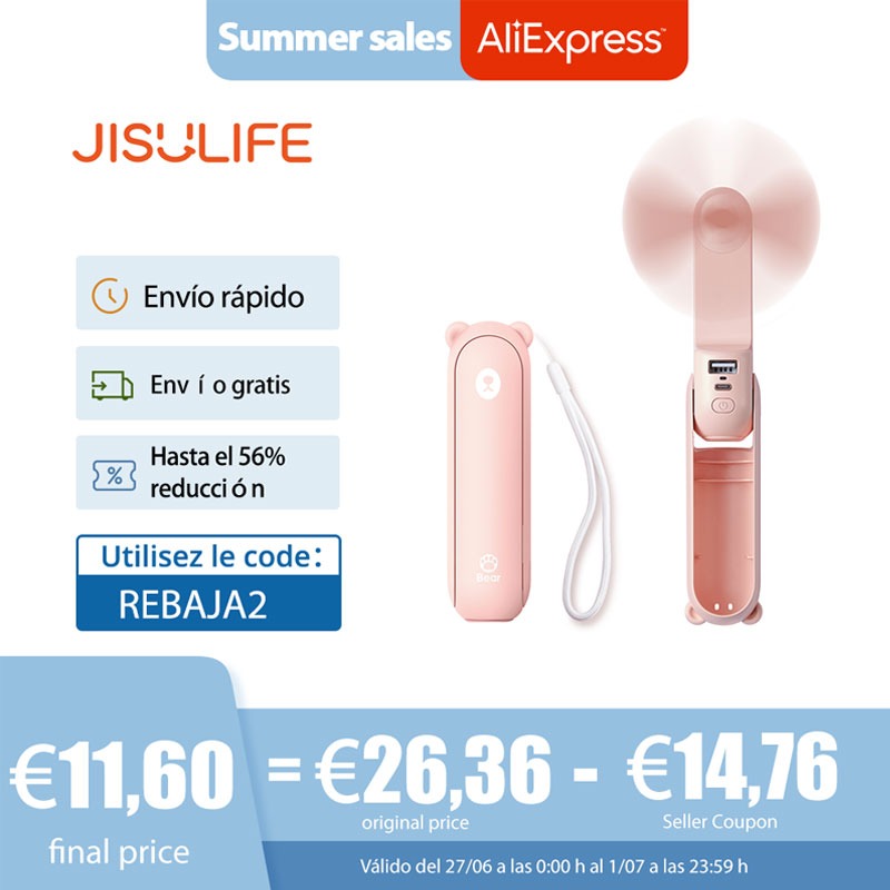 Este mini ventilador de mano tiene un precio de 15,85€ y cuenta con un envío gratuito de tan solo 3 días para que puedas tenerlo en tu neceser cuanto antes. Tiene un descuento del 56% ya que antes costaba 36,03€ y cuenta con una puntuación de 4,8 estrellas sobre un total de 5 con más de 350 valoraciones.