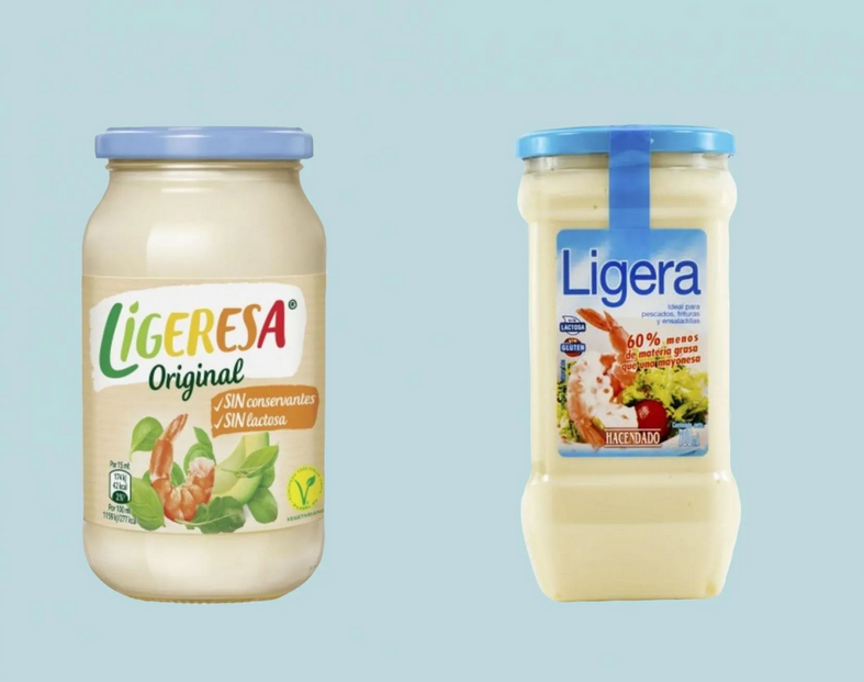 Otro de los clones de alimentación de Mercadona más conocidos y mejor logrados es su mayonesa Ligera, que como habrás podido intuir, está inspirada en la famosa Ligeresa. Incluso el envase replica los mismos colores del producto original, solo que el tarro tiene una forma más cuadrada. El sabor es realmente muy parecido entre varios productos, la mayor diferencia se encuentra en la textura, siendo la de Mercadona un poco menos espesa. El precio de cada frasco es de 1,2 euros.