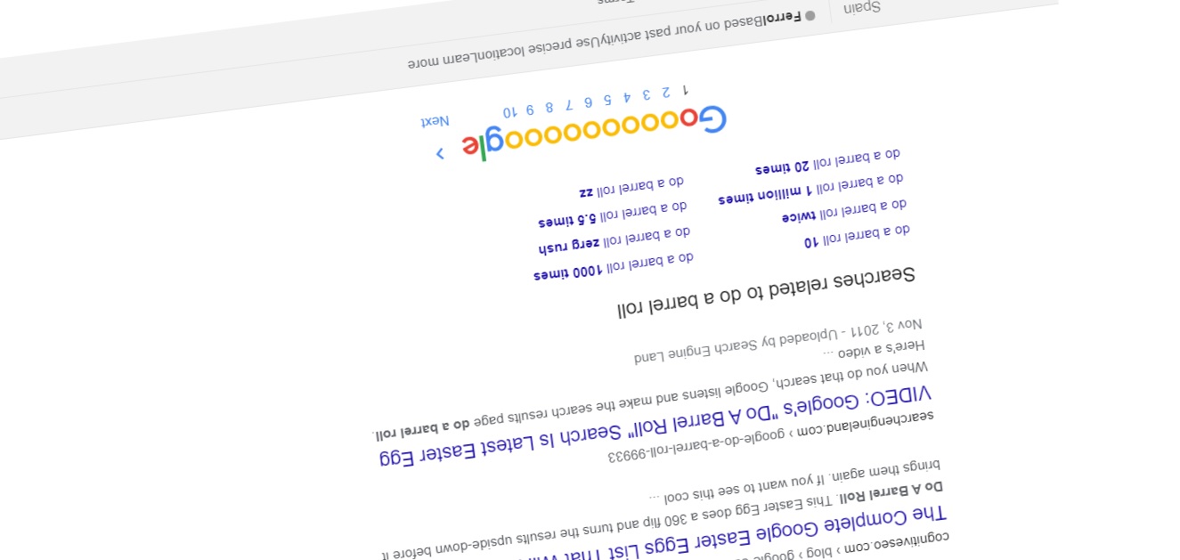 Si no lo sabes, ya tienes que estar compartiéndolo con tus amigos. Pues bien, el secretillo está en escribir 'do a barrel roll' y darle a 'enter'. En ese momento será cuando parece que tu cabeza da vueltas, pero no, será la página en sí. Luego volverá todo a la normalidad, sin que tengas que salir del buscador. Por lo que quizás te toque decir eso de que:”No te acostarás sin saber una cosa más”.
