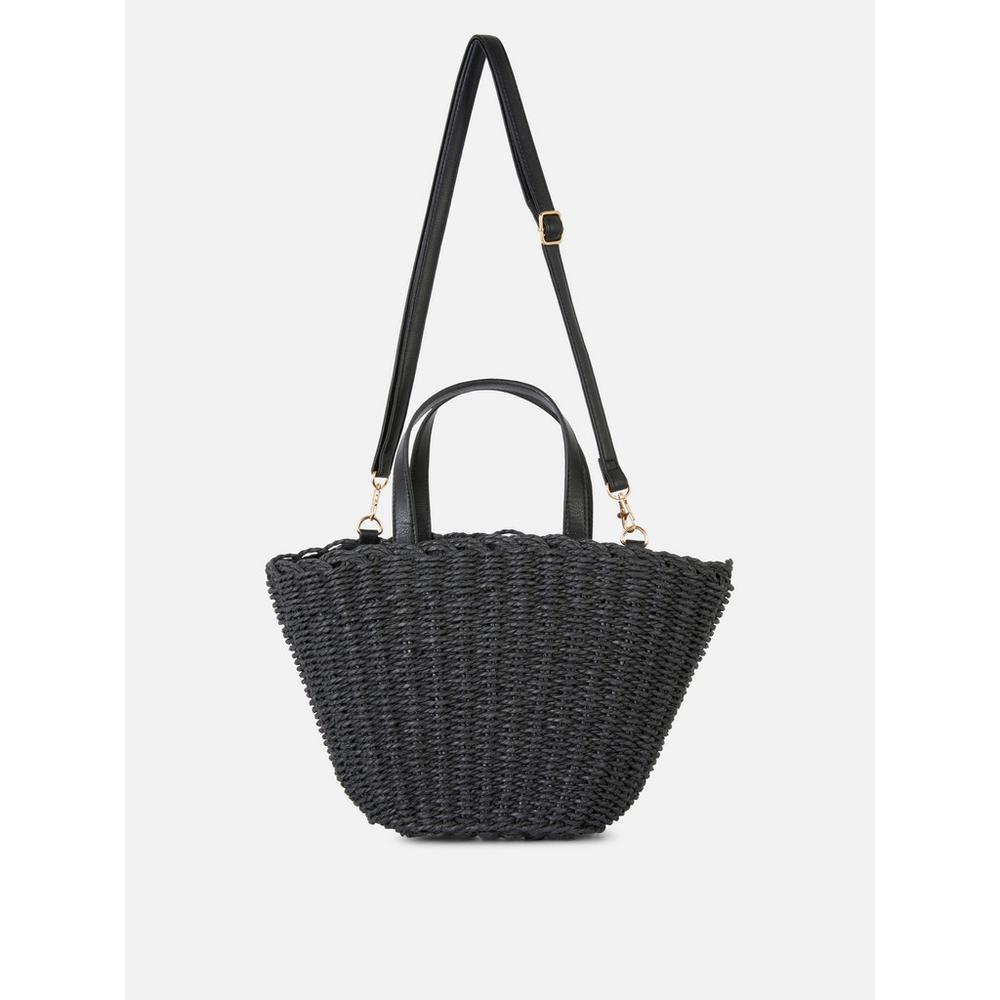 Este bolso tipo cesta de paja, tiene un estilo bombonera y es otra apuesta perfecta para este verano. Tiene una estructura rígida, y forma de cesta clásica, con dos alas cortas de polipiel y un asa más larga, desmontable y regulable, para llevar al hombro. Es de color negro, así que puedes combinarlo con todas tus prendas. Acertarás de cualquiera de las maneras, y además es perfecto para un día de playa o para el día a día. En Primark tiene un precio de 12 euros.