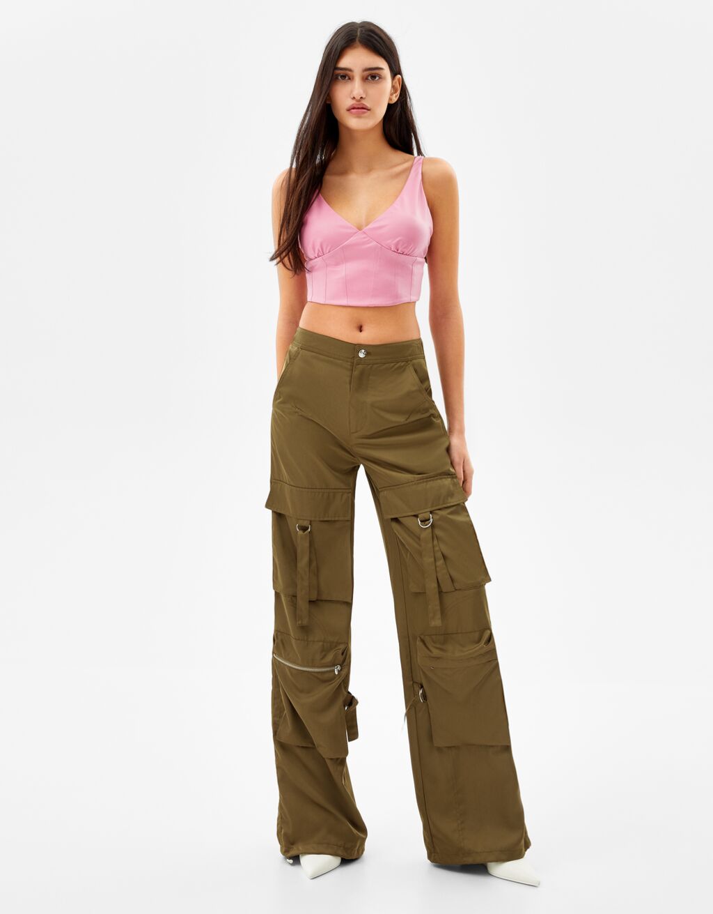 1Pantalón wide leg multipockets efecto nylon: la mejor ganga de Bershka