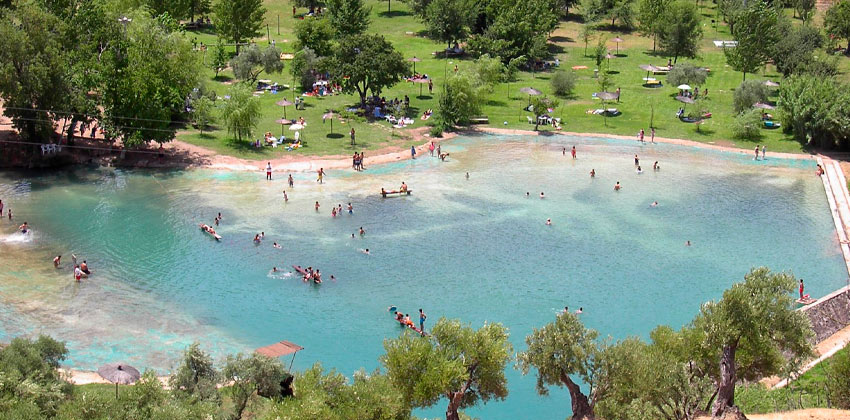 Si nos vamos a Cádiz podemos visitar la Playa de Zahara de la Sierra, al pie de la Sierra de Monte Prieto, bastante más cerca de la cosa. Se trata de un espacio salvaje, pero bien acondicionado, dentro del Parque Natural de la Sierra de Grazalema. Es una zona muy interesante para terminar un día de senderismo con un refrescante baño.