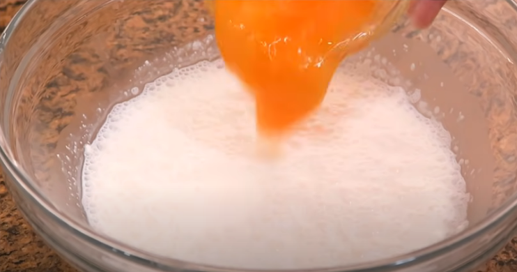 Bate muy bien para lograr que las yemas queden bien disueltas en la mezcla. No deben quedar restos de yema sin integrar a la preparación. Pasa la mezcla por un colador para eliminar cualquier trocito que haya quedado.