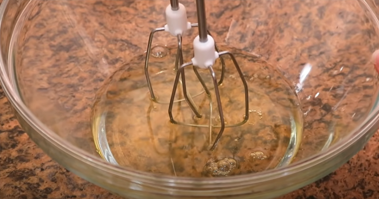 Lava y seca muy bien las varillas del batidor eléctrico y procede a batir las claras de huevo. Una vez que tengas las claras espumosas, añade la mitad del azúcar y continúa batiendo.