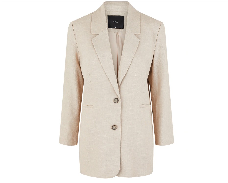 Este blazer de manga larga, bolsillos laterales y cuello con solapa representa la elegancia. Hazte un outfit perfecto poniéndote unos pantalones de lino, sombrero de colores tierra y deportivas con cámara en colores llamativos. Romperás con todo y serás el centro de todas las miradas.