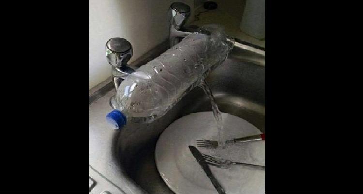 Simplemente tienes que buscar un envase de plástico, de los que son grandes; quizá de un litro o dos, hacerle dos agujeros a un lado, lo suficientemente grandes para que pase la boca del grifo por ahí. Luego cierras bien la tapa del envase, e introduces la boca de los grifos por los agujeros. Problema resuelto en menos de 5 pasos. Y aunque estéticamente no se vea tan bien, ya tienes la idea de cómo solucionar el problema.