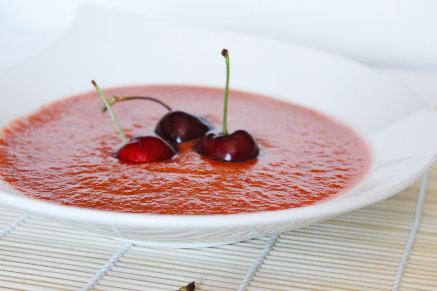 Con cada uno de los elementos de este gazpacho de cerezas listo, solamente queda servirlo al más puro estilo de alta cocina, con delicadeza y elegancia.
