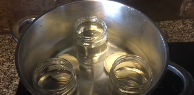 Pon los botes de vidrio junto a sus tapas en una olla y cúbrelos con agua. Deja que el agua comience a hervir y deja que se esterilicen durante 10 minutos contados a partir del momento que le agua comience a hervir.