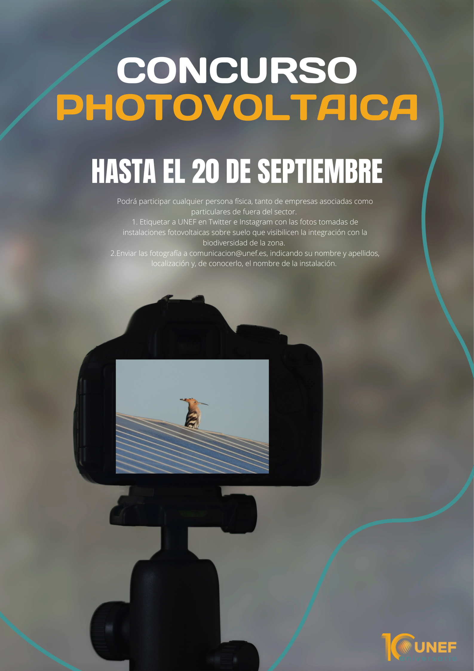 Mediante esta actividad, UNEF pretende dar a conocer cómo la transición energética se está realizando en España de manera sostenible, gracias al despliegue de nuevas instalaciones renovables que generan un retorno directo para el territorio, con valor compartido en las comunidades locales. En esta segunda edición podrá participar cualquier persona física con una fotografía que ilustre la convivencia de la biodiversidad con los proyectos en suelo de energía solar. Para ello, deberán etiquetar a UNEF en Twitter e Instagram en fotografías que hayan tomado de instalaciones fotovoltaicas. Además, deberán enviar dicha fotografía a 'comunicacion@unef.'es, indicando su nombre y apellidos, localización y, de conocerlo, el nombre de la instalación antes del 20 de septiembre de 2022.