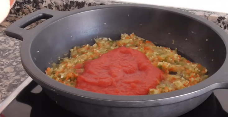 Cuando incorpores el tomate, mézclalo muy bien y deja que todo se cocine por un par de minutos a fuego medio. La cocción del tomate la debes mantener hasta que los jugos de este ingrediente se terminen de secar para dar paso al resto de los ingredientes.