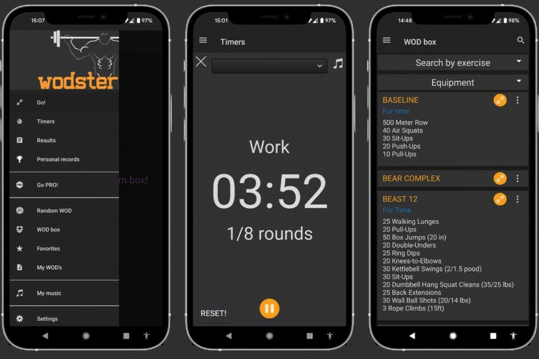 WODster es una de las apps que mejor valoradas está. Para comenzar, no tiene anuncios. Esta app te da la opción de seleccionar entre cientos de WODs que encontrarás en las referencias o ayudarte a crees tu propio WOD. Otro aspecto interesante de WODster es que tiene una función que te permite subir y adjuntar un selfie que tomes después de terminar el entrenamiento a los datos de su resultado a tu récord diario del entrenamiento.