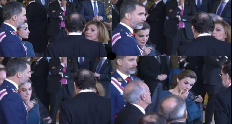 En las imágenes, podemos ver cómo la Reina Letizia le falta el respeto a todos los presentes y al país. Los reyes se encontraban en el Salón del Trono del Palacio Real, durante la Pascua Militar, y mientras el rey hablaba con Mariano Rajoy y Dolores de Cospedal, la Reina Letizia no dudó en sacar su espejo y retocarse el maquillaje.