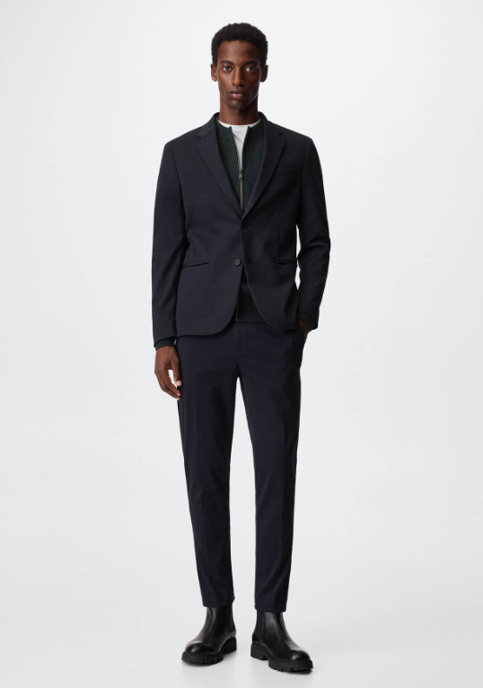 La temporada de trajes ha dado el pistoletazo de salida. La llegada del otoño significa para muchos la vuelta a la oficina y, como no, levantarse todas las mañanas y vestirse con un elegante traje. Si no quieres ir a un sastre para que te haga uno a medida, puedes optar esta americana traje slim-fit algodón por 99.99 euros que puedes comprar en las tiendas de Mango. ¿Qué tiene de especial esta chaqueta? Pues su diseño slim fit que estiliza la figura, su cierre con dos botones, su tejido con mezcla de algodón y lo puedes combinar con el pantalón en el mismo tono.
