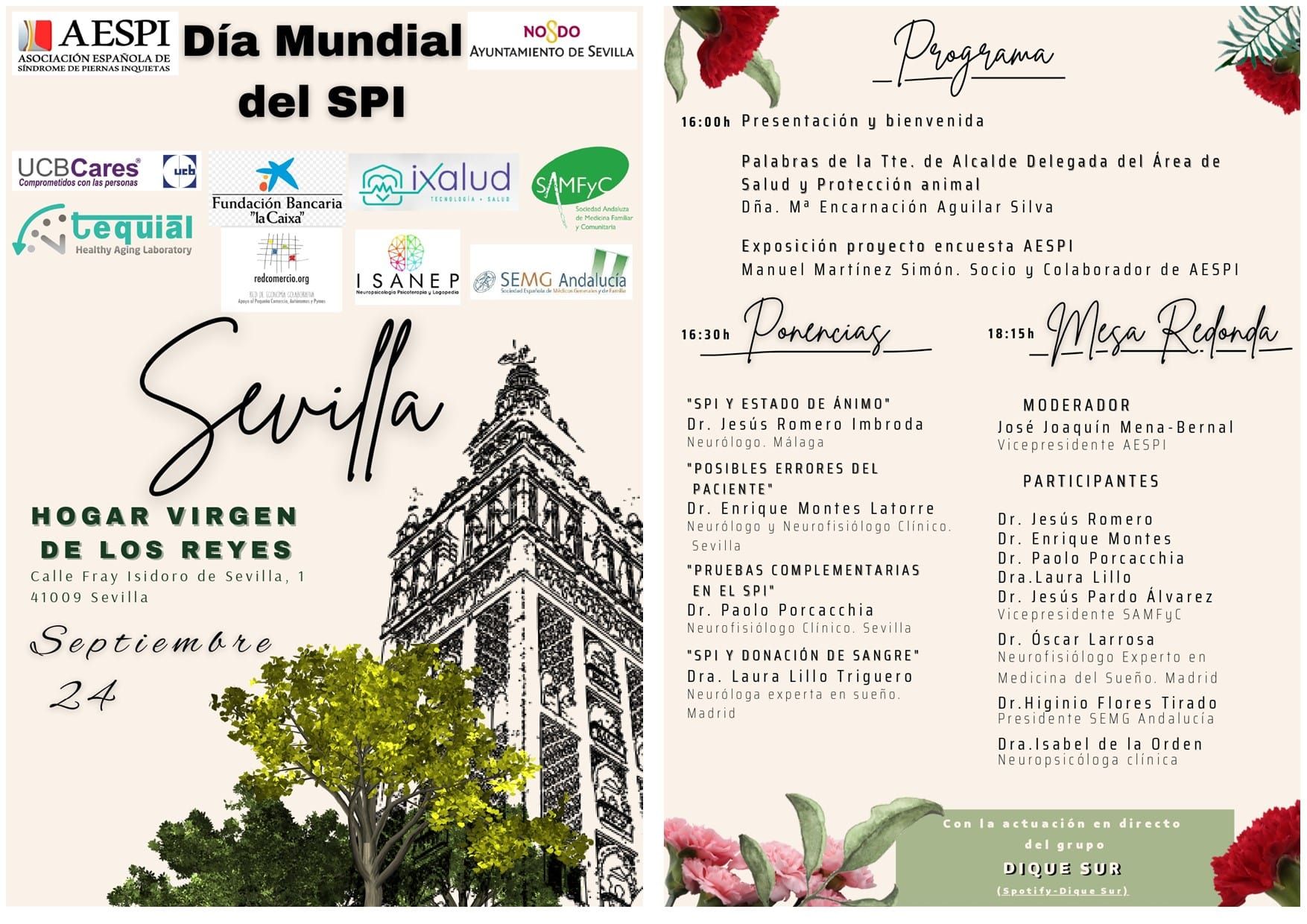 El próximo 24 de septiembre se celebra en Sevilla el Día Mundial del Síndrome de Piernas Inquietas; este evento se podrá seguir por streaming en el canal de Youtube de AESPI (Asociación Española de síndrome de piernas inquietas), organizador del evento