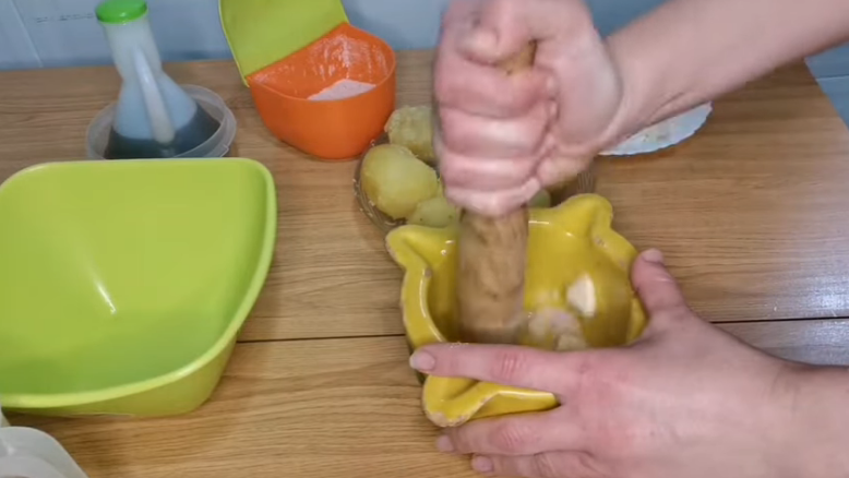 Para preparar la pasta de ajo, es necesario contar con un mortero grande, ya que en este es que se prepara de manera tradicional el atascaburras. En caso de no tener un mortero grande, prepara la pasta de ajo y llévala a un bol para allí proceder a preparar el plato.