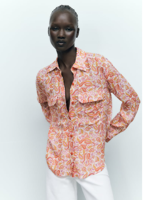 Y de una camisa a una blusa, en este caso estampada. Es un modelo confeccionado en viscosa, con cuello solapa y manga larga acabada en puño. Tiene bolsillos con solapa en delantero, bajo asimétrico, cierre frontal con botones. Lo tienes en negro y rosa a un precio además con descuentazo del 56%, con lo que se queda en tan solo 12,99 euros.