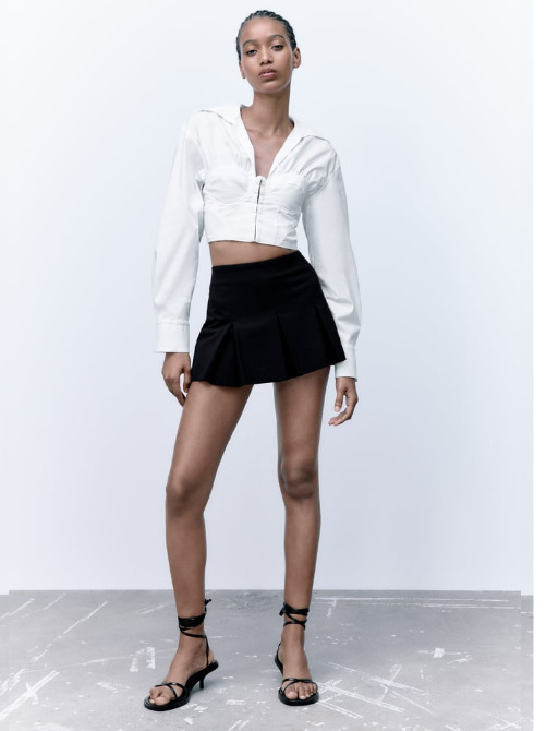 En otoño las temperaturas suelen bajar considerablemente, pero no llegan al extremo del invierno. Por esta razón, podremos emplear distintos tipos de prendas, como por ejemplo la falda pantalón tablas de Zara. Es ideal para cualquier tipo de fiesta o evento y más si es al aire libre. Está confeccionada a partir de un diseño con tiro alto y cierre lateral con cremallera oculta en costura. Su precio es de 25,95 euros.