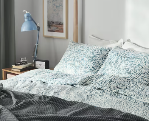 Qué mejor forma de dar la bienvenida a las noches otoñales que estrenando ropa de cama. Y más aún si es con una funda nórdica confortable, que ayude a conciliar el sueño al final de cada jornada. Es el caso de este modelo de Ikea que llama la atención tanto por su cuidado diseño como por su propia composición. Su aspecto está formado por los colores blanco y azul, y se puede adquirir por solamente 12 euros.