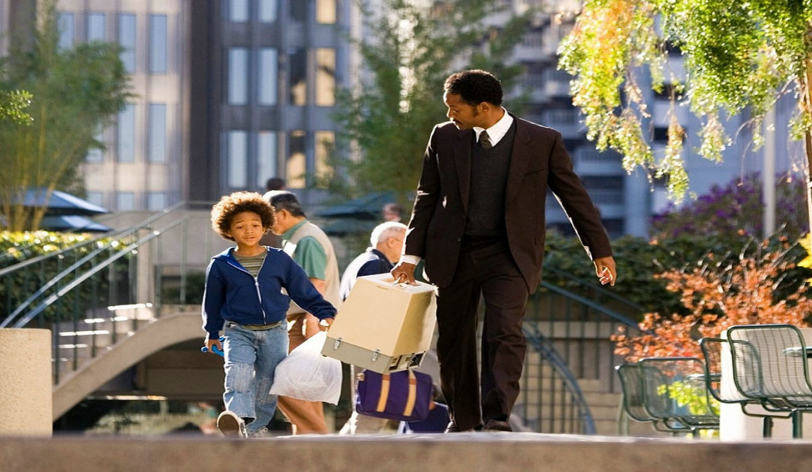 Una película del año 2006, protagonizada por Will Smith. Cuenta la historia de sacrificio de un padre y su hijo, muestra el lado oscuro de los sacrificios que los padres tienen que hacer para velar por el bienestar de los hijos. Despertar sin ganas de continuar y ver el rostro de tus hijos debe ser siempre una motivación y así se plasma en la película.
