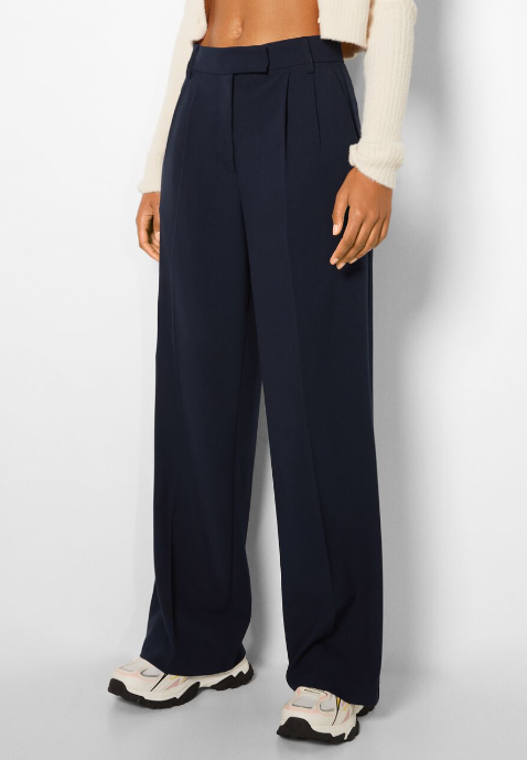 Pasamos de la moda más urbana, a los pantalones confeccionados para ir a la oficina. Hay un prejuicio, un secreto a gritos que la ropa de diario es aburrida y simple, sin embargo, con la cantidad de proyectos y renovaciones en el mundo de la moda, la ropa cada vez se adecua más a las necesidades del usuario dándole ese toque chic que todas buscamos. La prueba fehaciente de este hecho es este pantalón tailoring wide leg dad fit por 25,99 euros, que tiene la peculiaridad de combinar el tejido de un pantalón de traje con el diseño de los pantalones anchos que tanto se llevan en la actualidad.