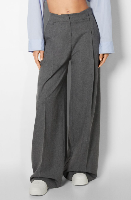 La denominación wide leg es sinónimo de éxito. Puede que te gusten los pantalones ceñidos que siguen la línea de tu cuerpo, pero la moda actual reclama, pide a gritos el oversize, es decir, los pantalones anchos. Por ello, si quieres renovar tu armario e ir a la última te recomendamos que te hagas con este pantalón tailoring wide leg por 35,99 euros. Si nos centramos en la pieza, tiene unas patas anchas al estilo wide leg, un largo que pisa el suelo, un tiro alto que estiliza el vientre y un color gris que le da un toque elegante.