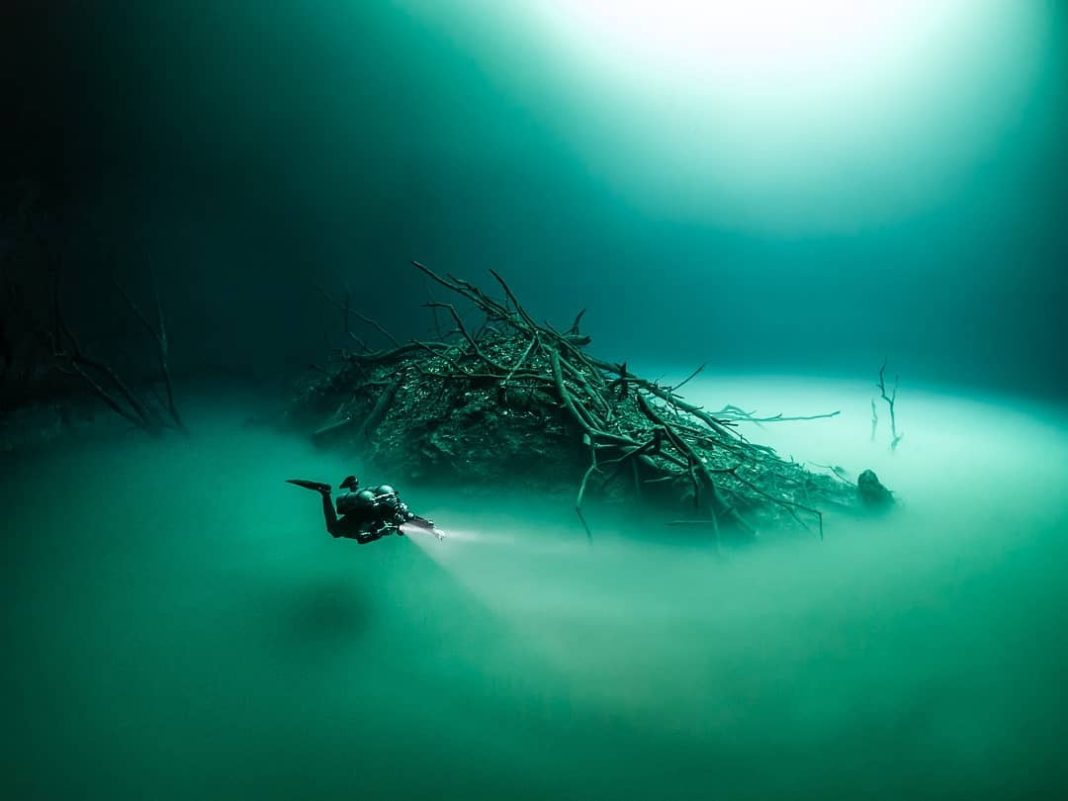 Desde que éramos pequeños nos dejaban muy claro que el mar era diferente al río, pero hay excepciones que rompen la regla. Es verdad que es un fenómeno que hay que coger con pinzas, no es un río literal, sino que es un efecto óptico que desafía nuestra propia percepción. Estamos hablando de Cenote Angelite Cave, un fenómeno natural que descubrieron en México que debido al cambio de agua salada en agua dulce produce un hecho paranormal. Consiste en que los buzos, al entrar en el cauce del río, parece que estuvieran nadando por un río submarino.