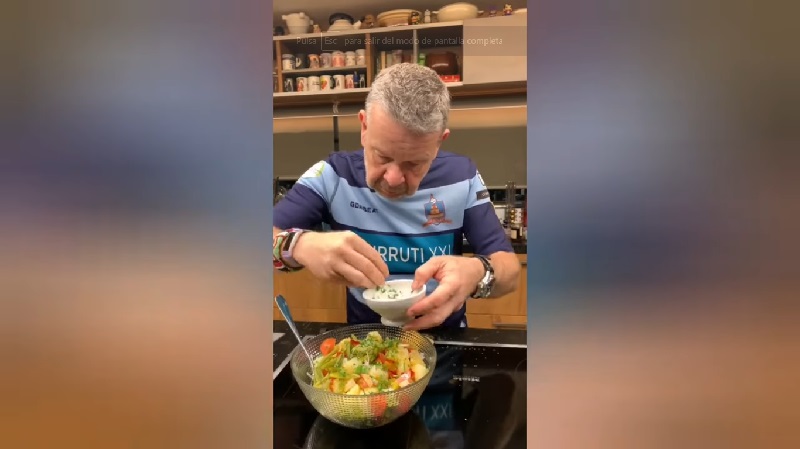 Justo después de aliñar la ensalada campera con la vinagreta, Chicote le echa un puñado de perejil picado. Entonces, el cocinero remueve muy bien la mezcla para que todos los ingredientes se empapen. Si no tienes prisa, déjalo reposar durante 10 minutos para que los sabores se vayan fusionando. Todavía queda por agregarle el último ingrediente a esta receta típica del verano...