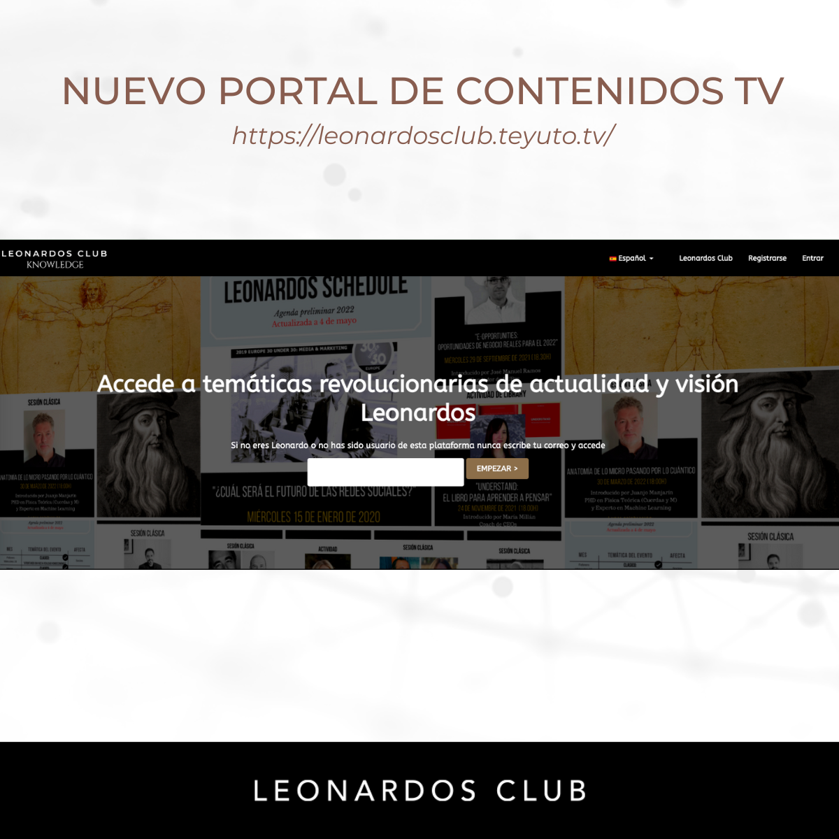 Ante el desbordamiento de información al que asiste la sociedad, Leonardos Club acaba de lanzar su canal TV de contenidos para que cualquier ciudadano pueda acceder a reflexiones y propuestas de cambio realizadas con un método científico experto polímata sobre temas fundamentales.