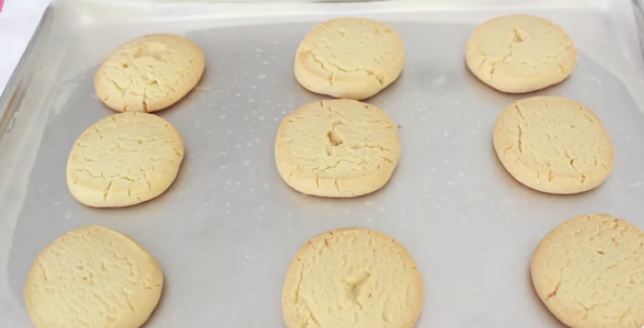 Lleva la bandeja con los polvorones de naranja al horno precalentado a 180 °C y deja que estos se horneen durante unos 15 a 18 minutos. Debes estar atento para que no terminen quedando muy dorados.