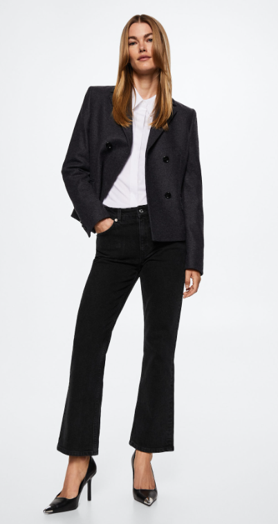 La ropa de oficina, desafortunadamente, es a la que más uso le damos a lo largo del año. Americanas, camisas, vestidos, blusas o chinos, hay toda una variedad de prendas que concuerdan con las normativas de vestimenta que implantan las empresas. Así que, si estás pensando en dar un toque de aire de fresco a tu armario te recomendamos estos jeans rectos tiro medio de Mango que sólo cuestan 29,99 euros y que están disponibles en negro y en vaquero. ¿Qué tiene de especial este jean? Pues su diseño acampanado que tan de moda está, además de su largo por el tobillo y su tiro medio.