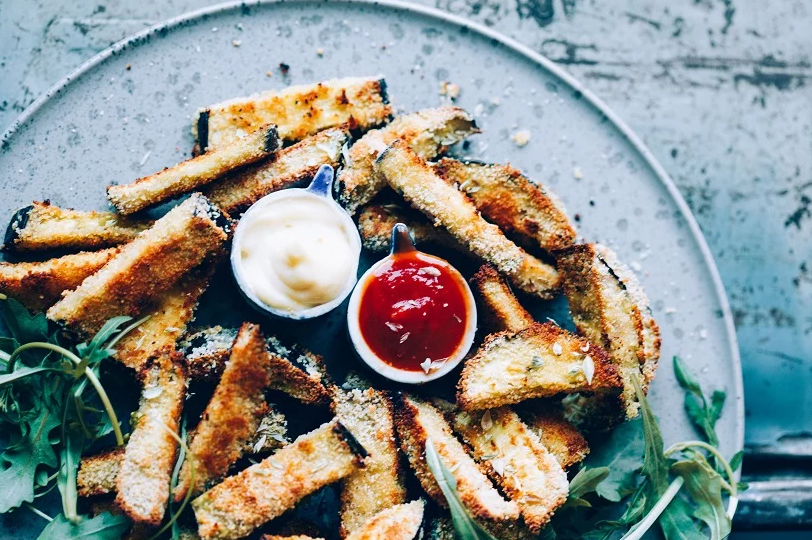 Los fingers son esos palitos crujientes y rebozados que se mojan en una salsa bien sabrosa y a todo el mundo nos encantan. Generalmente, se hacen de pollo, y están muy asociados a lo que conocemos como comida basura. Pero, ¿qué tal si les damos una vuelta a la receta y los convertimos en un bocado más saludable? Una buena alternativa es hacerlos de verduras, por ejemplo con berenjena, que tiene un color y una textura que se puede asemejar mucho al pollo, y su pulpa, de sabor suave, absorbe muy bien el toque de las especias y la salsa.