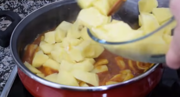Es necesario remover constantemente para evitar que las patatas se peguen al fondo de la cazuela.