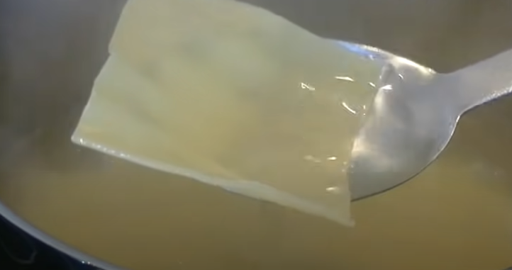 Pon al fuego una olla grande con abundante agua y espera que esta comience a hervir. Sumerge las láminas de pasta una a una para evitar que se peguen y deja cocinar por un par de minutos. Déjalas cocinar según las indicaciones del empaque, ya que en algunas marcas, es necesario unos minutos más de cocción que en otras.