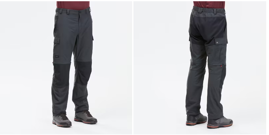 Seguimos con el trekking, con este modelo de pantalón MT100 de hombre. Ha sido diseñado para que, en tus salidas de trekking, puedas adaptar su longitud al tiempo atmosférico. Su tejido es resistente y duradero. A su vez, ofrece un secado rápido y zonas de refuerzo con efecto perlante. Para la correcta colocación de las perneras, las hemos señalado con colores. Su precio es de 24,99 euros.