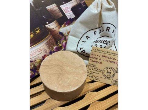 La marca La Fabrica Artigianale presenta un nuevo champú sólido formulado a base de aceites vegetales de oliva virgen bio, sésamo y manteca de karité bio. Se trata de Solid Ghassoul Rosa Incienso Shampoo, un producto para el cuidado capilar formulado especialmente para cuidar, reparar y proteger el cabello.