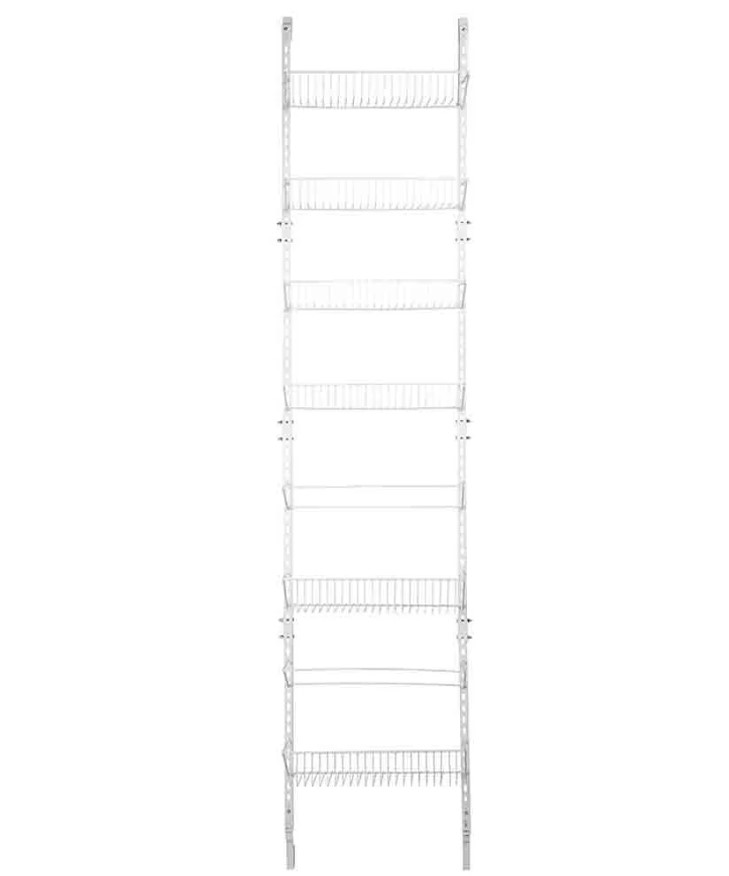 Este producto de Lidl es una estructura que se puede colgar en cualquier puerta o incluso pared de la casa. El organizador de puerta tiene cuatro cestas normales y cuatro más profundas donde dejar y colgar nuestros objetos. A cada lado se sitúa una barra, que permite la libre configuración de las cestas conforme a nuestras necesidades. Este organizador está hecho en hierro, lo que le da una increíble resistencia. El producto es de color blanco y cuesta 24,99 euros.