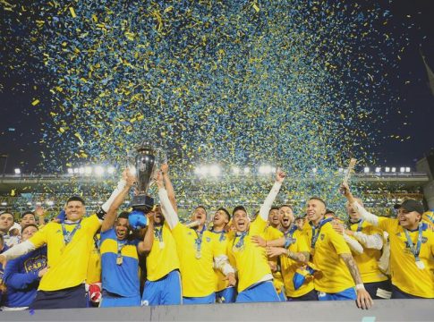 Boca Juniors se proclamó campeón del fútbol argentino este domingo en un dramático desenlace en el que empató (2-2) con Independiente en la Bombonera y salió con el título gracias al triunfo de River Plate sobre Racing Club (1-2) en Avellaneda.